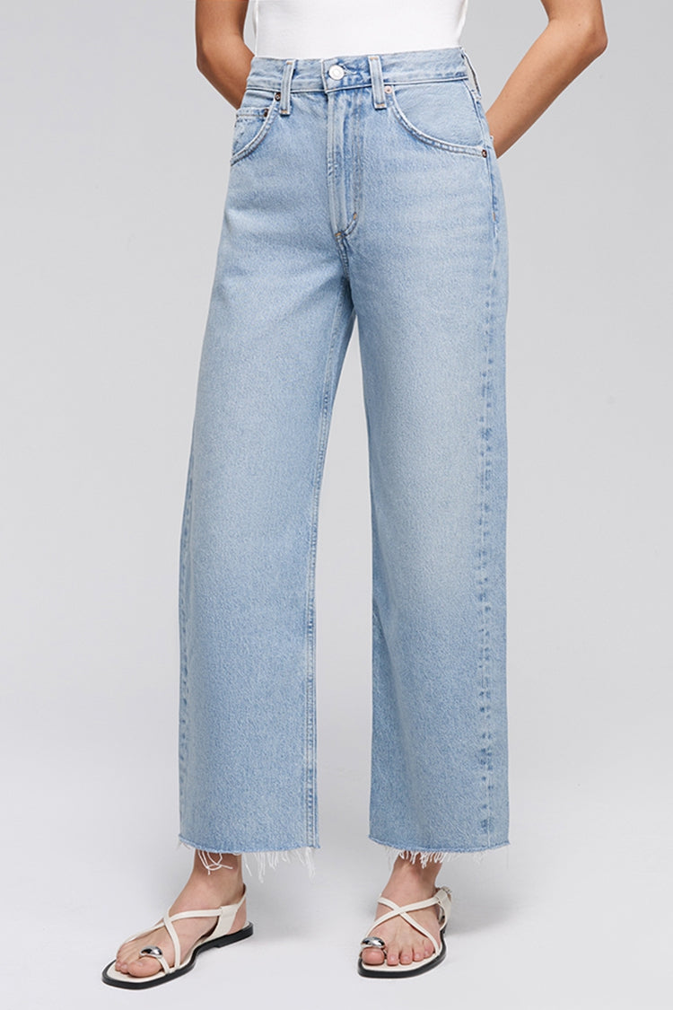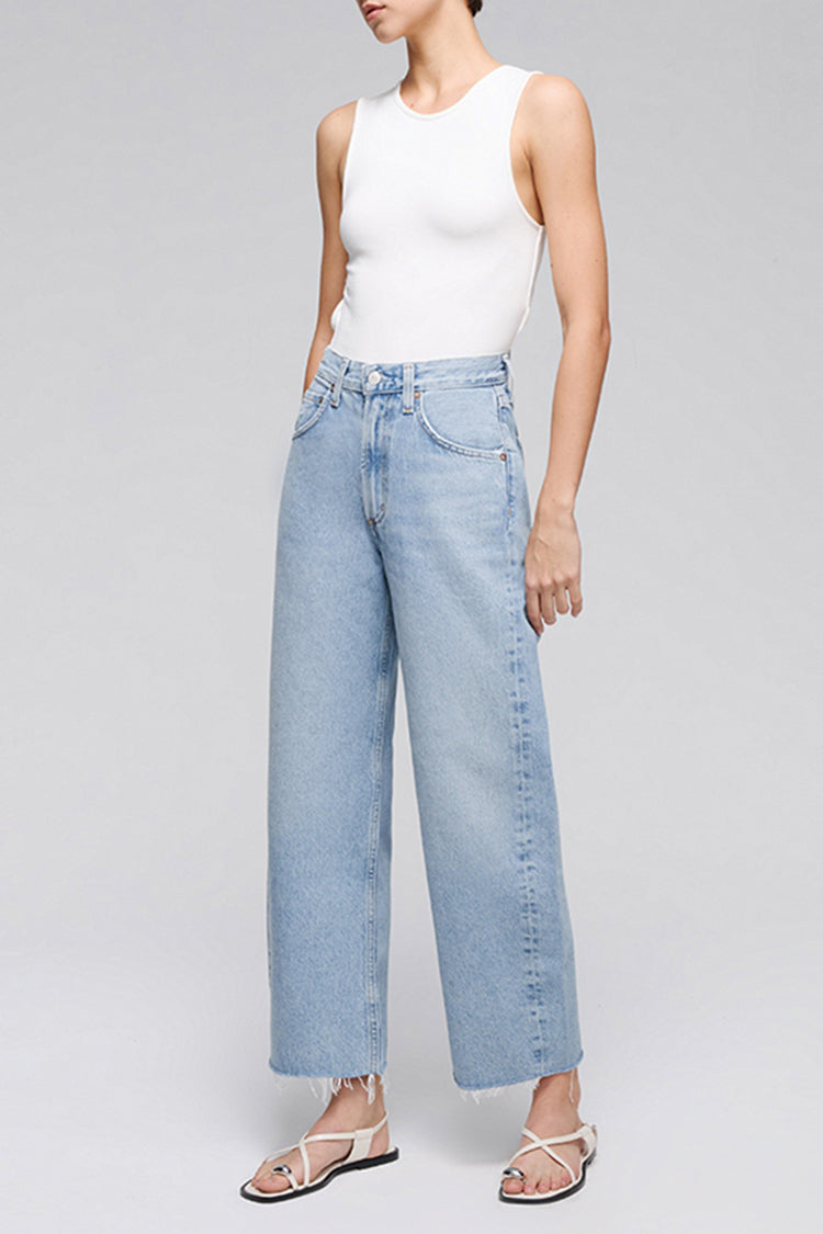 The Low Curve Fray is a summer-ready adaptation of the classic Low Curve Jean. Featuring a cropped inseam, this version is tailored for warmer weather, with a frayed hem that adds a laid-back, effortlessly chic touch. Crafted from a blend of regenerative cotton and recycled cotton, the pale vintage indigo denim showcases marbling for a perfectly worn-in look. The fabric offers a beautiful drape, providing both comfort and structure in a versatile, easy-to-wear style. Pair with a relaxed tank and sandals for a casual summer vibe.