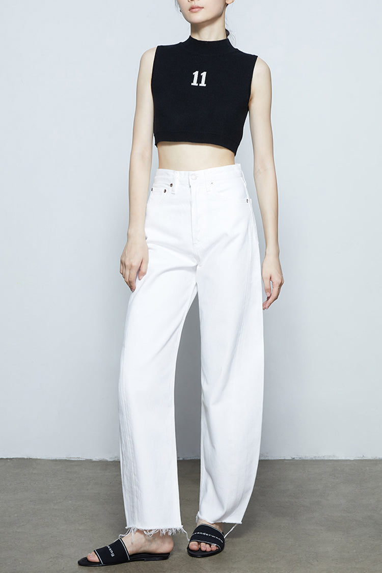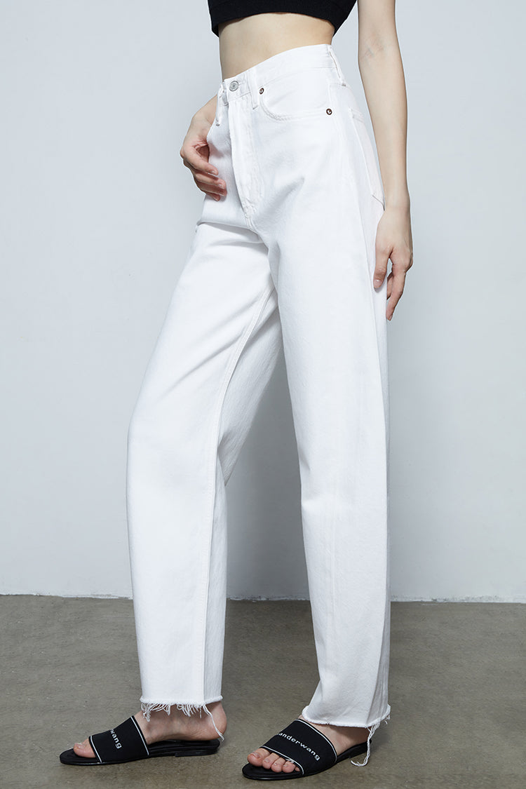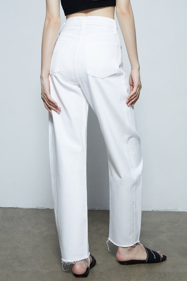 Looks Like: Classic cloud white with a raw hem