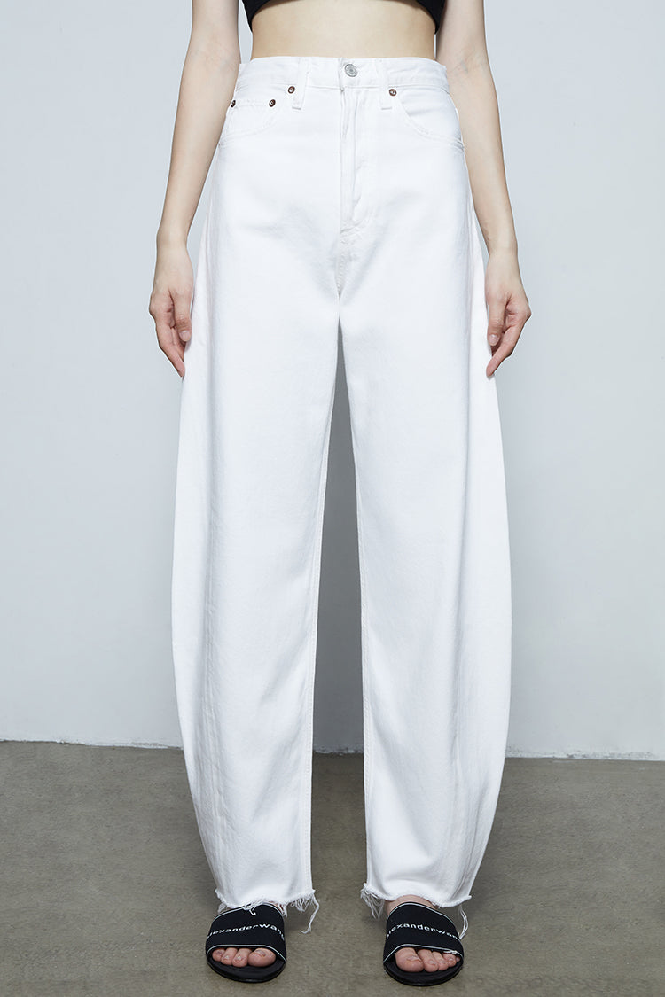 Structured to perfection. The Luna is designed with a waist-accentuating high-rise and a full-length relaxed leg. The pieced insert detailing at the outseam creates a bowed leg silhouette, ideal for taking your everyday denim to the next level.