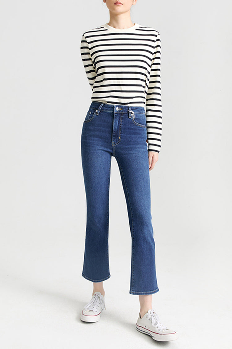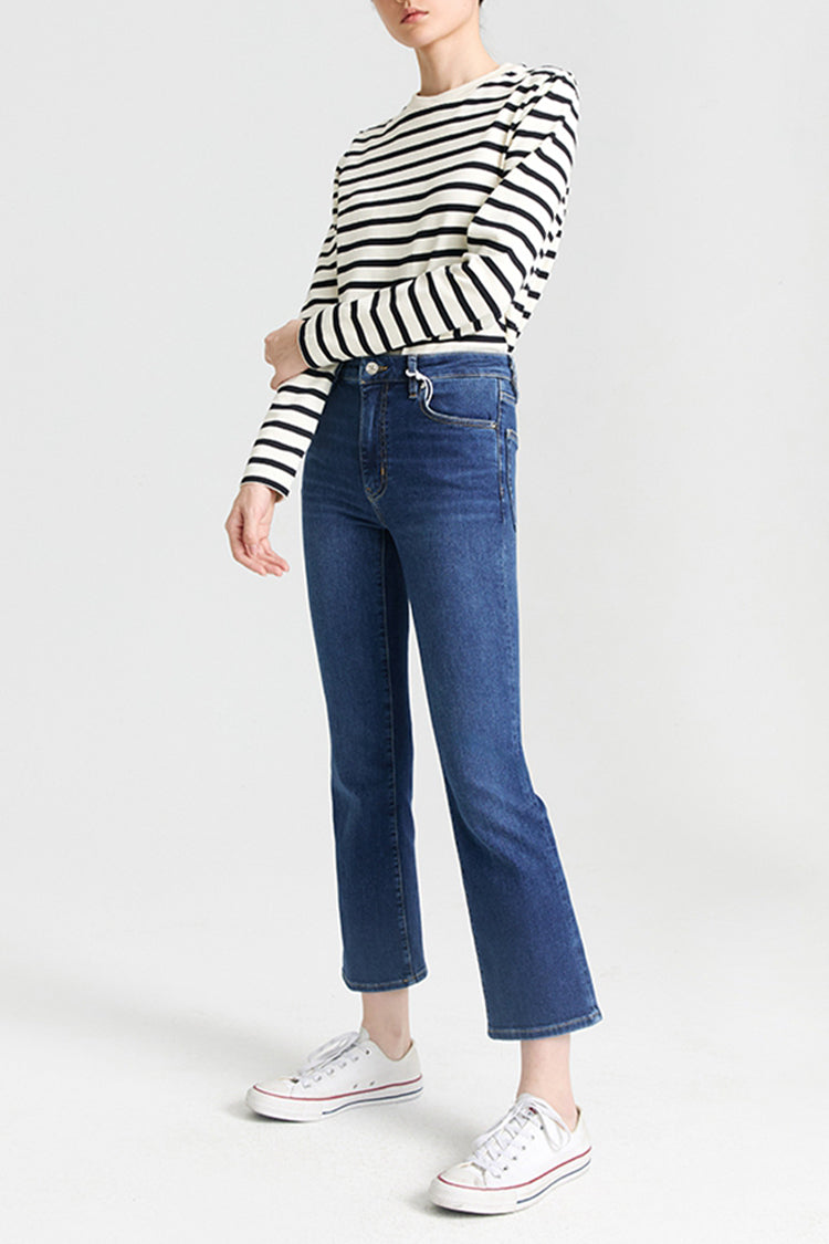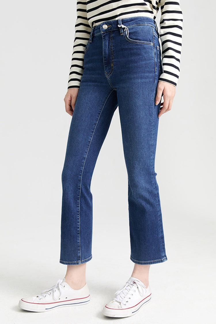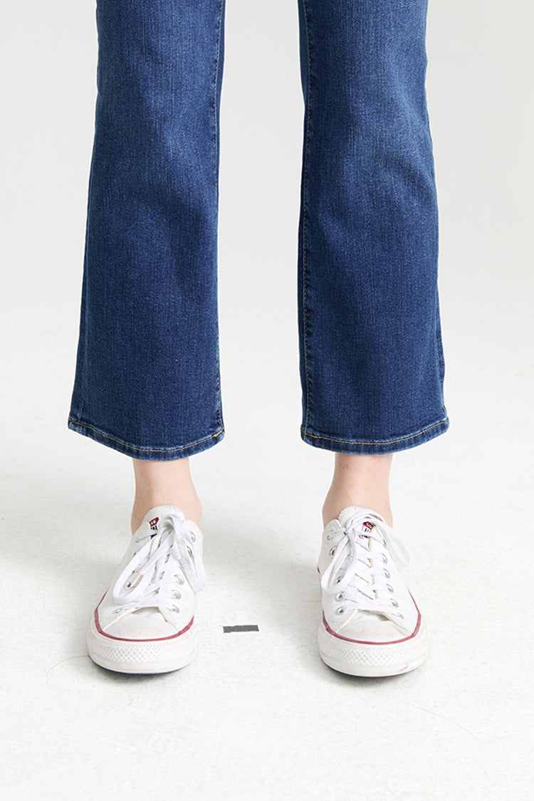 A cropped inseam takes our new Reboot jean up a notch, finishing in a soft bootcut that hits above the ankle. Cut in an ultra stretchy cotton blend for comfortable, all-day wear.