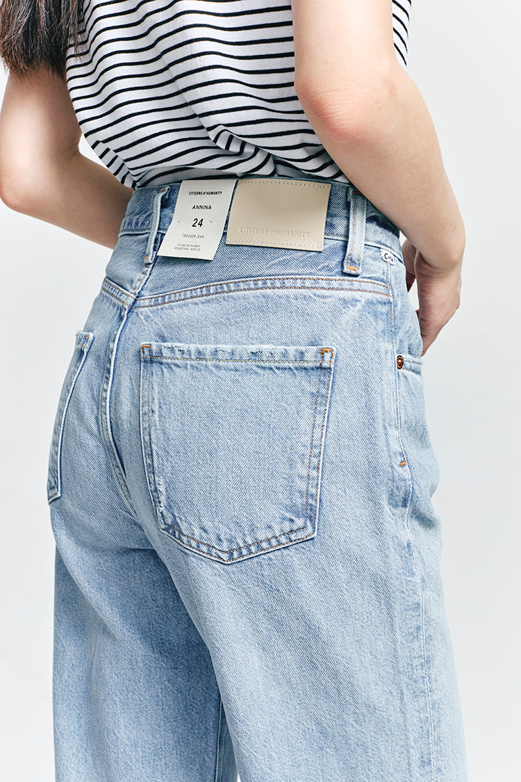 An easy silhouette with endless vintage appeal. The Annina sits high on the waist with an easy and relaxed top block. This subtle wide leg and 30" inseam elongates the body while offering the perfect length to wear with heels or sneakers.