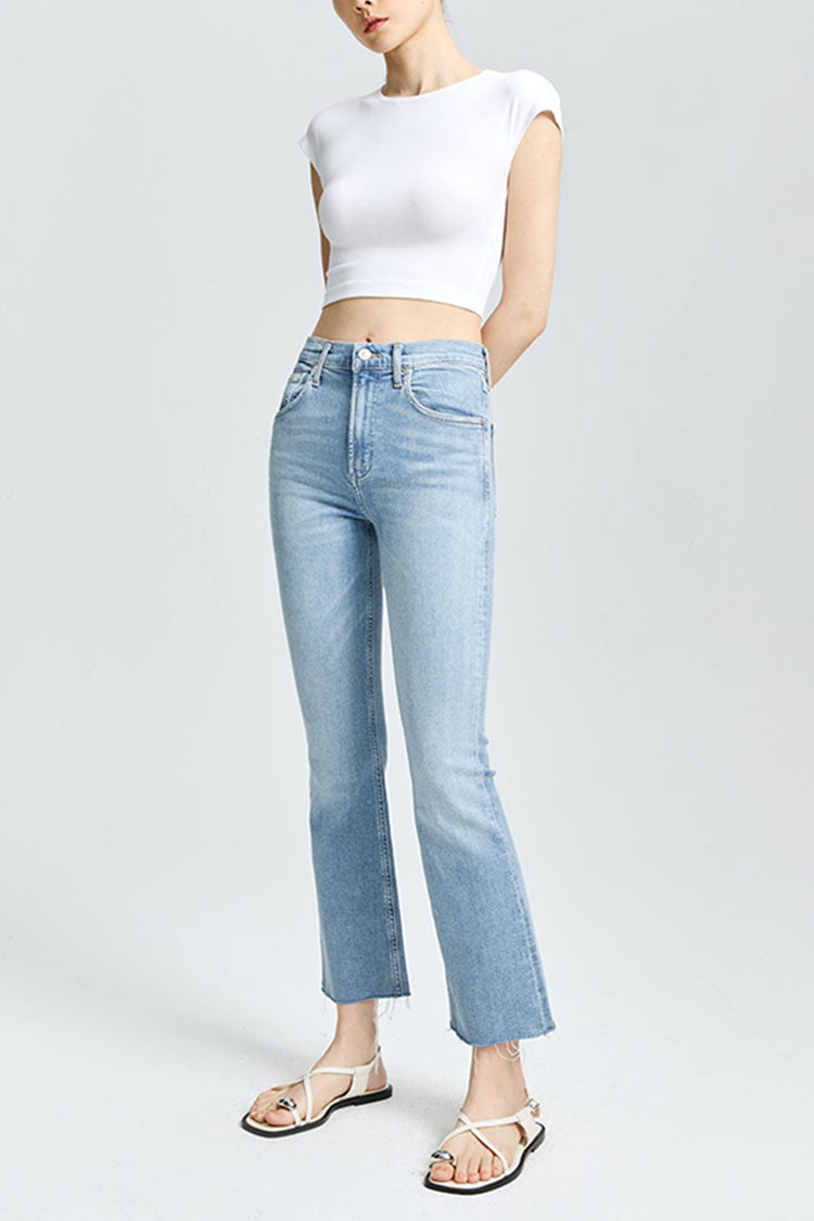 Your new go-to. The Isola features a flattering mid rise with a close fit through the leg and subtle bootcut flare. This cropped fit hits right above the ankle, making them the perfect pair to show off your shoe of choice. This transitional style is sure to be your new closet staple.