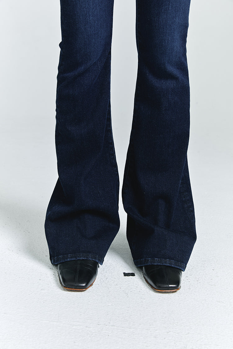 This high-rise jean puts a fresh spin on retro style with a form-fitting silhouette through the leg, generous flare from the knee and leg-lengthening 34.5" inseam.