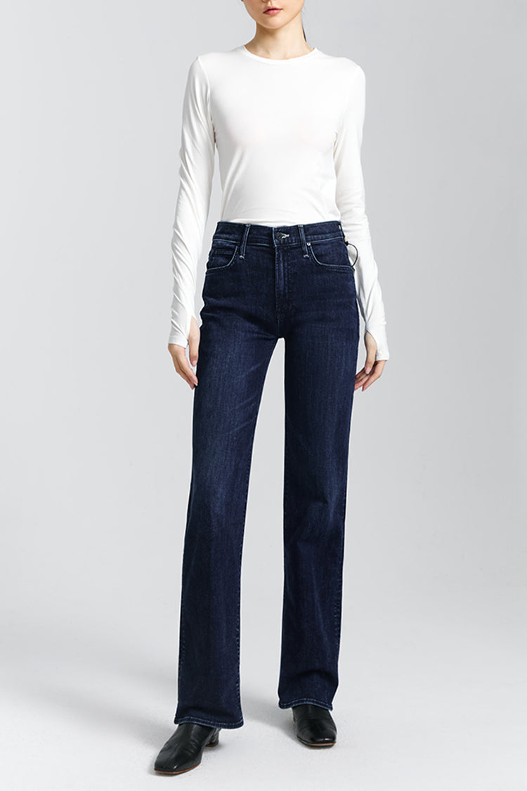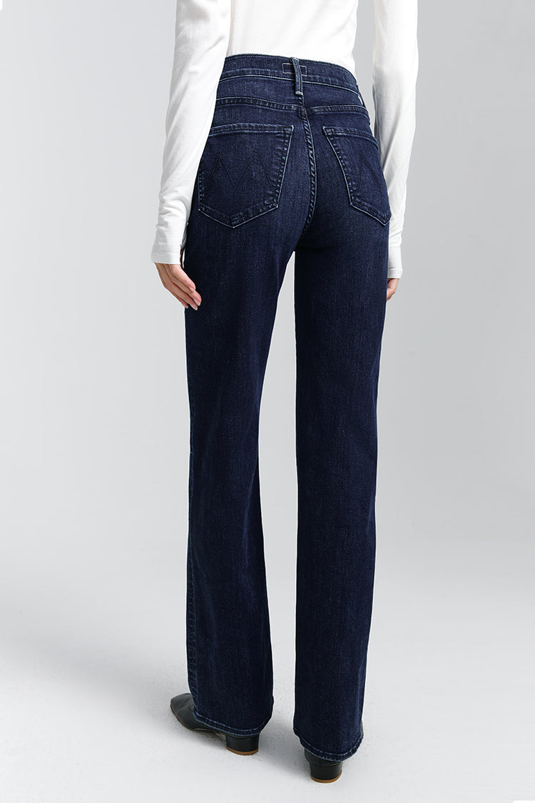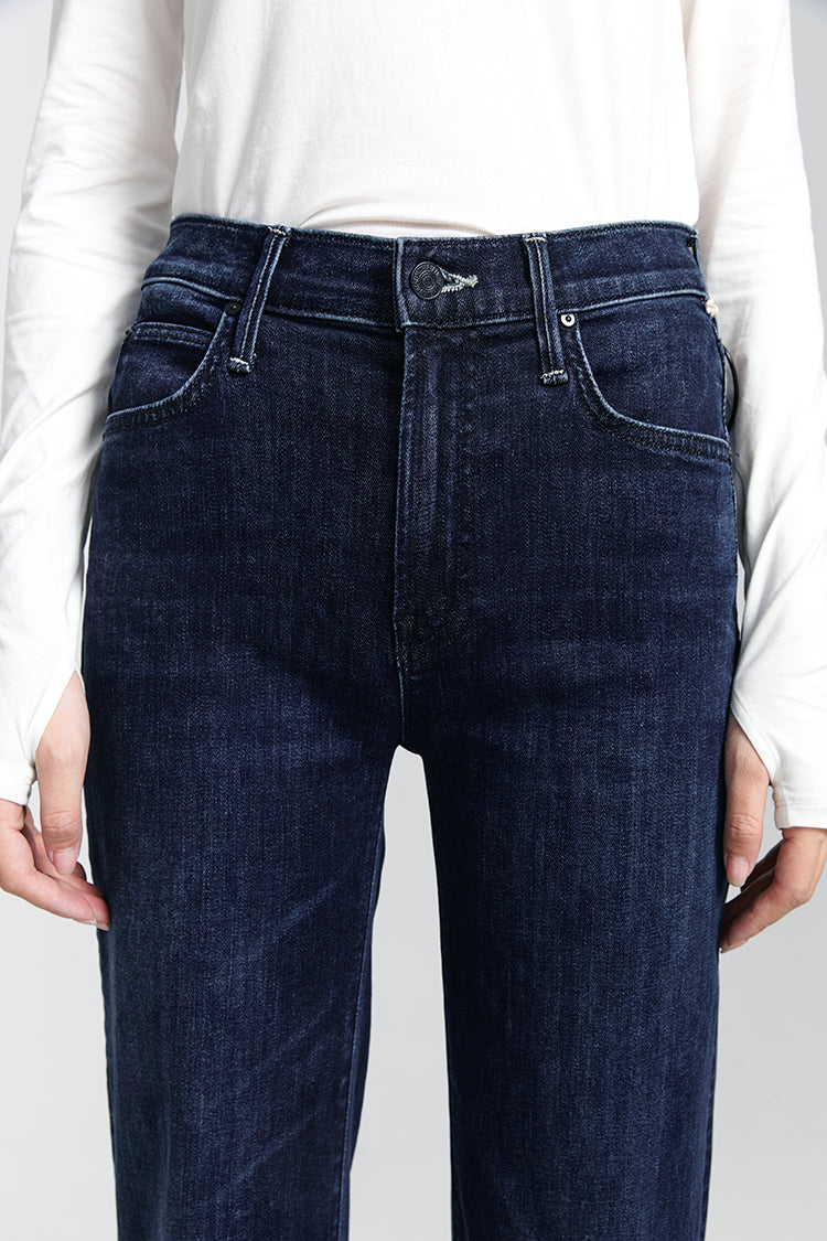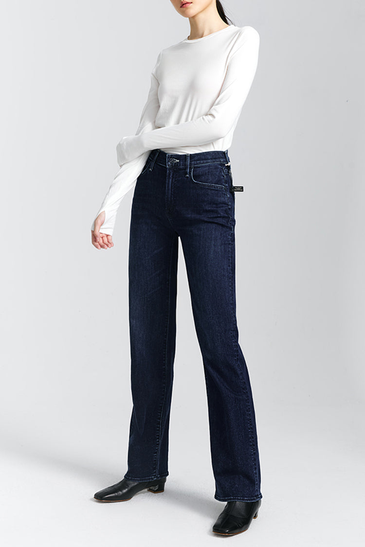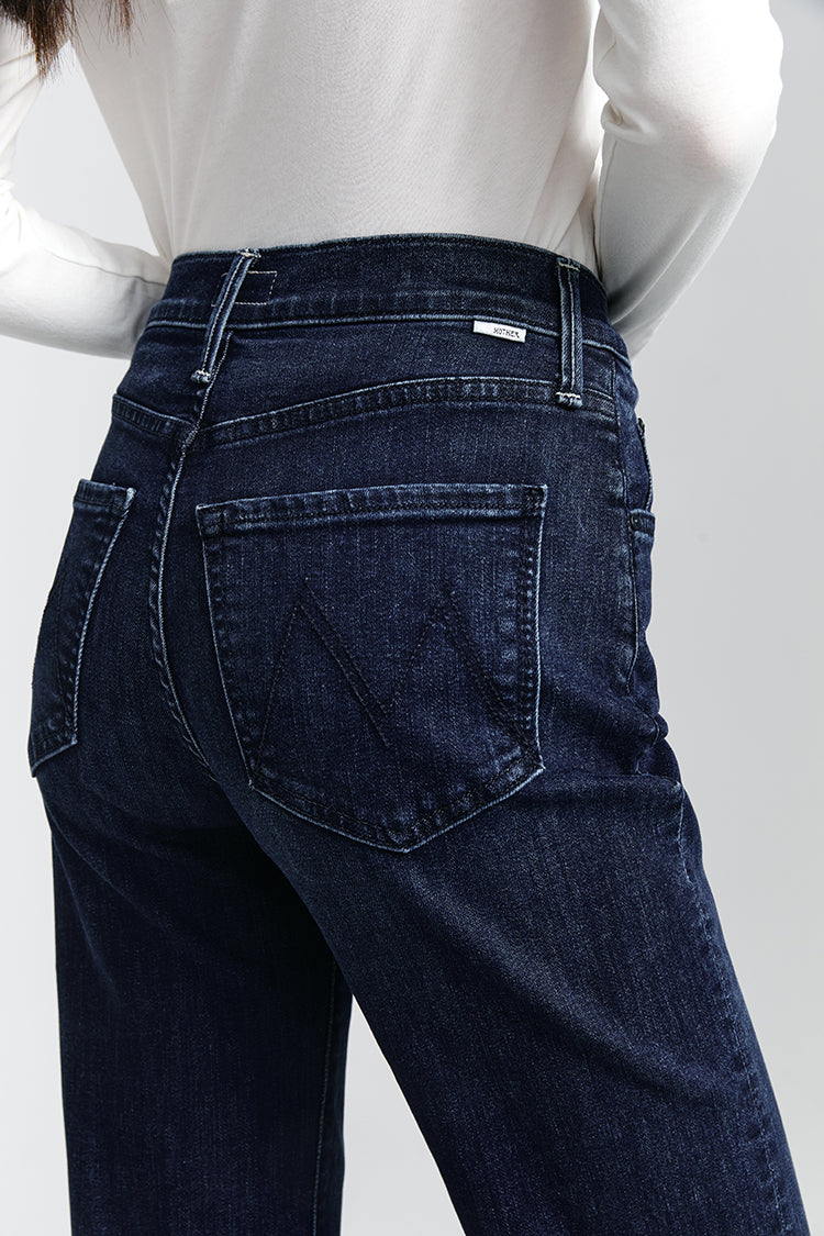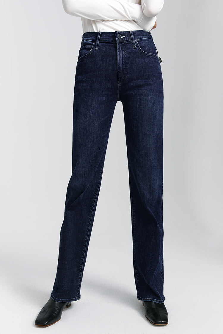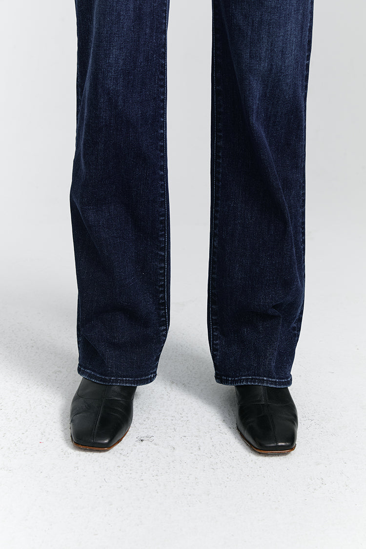 A high-rise straight leg with a 30-inch inseam and a clean hem. Cut from stretch denim, I Put A Spell On You is a dark blue wash with subtle whiskering and fading at the knees.
