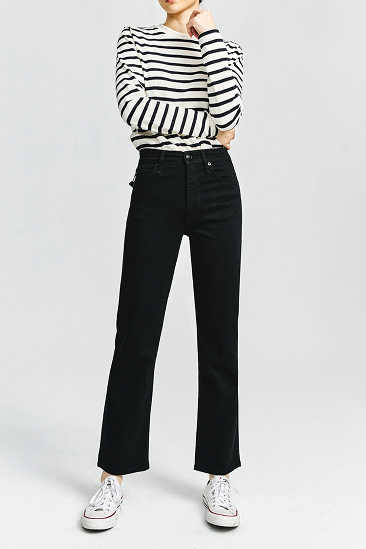 The Harlow. Mid-rise, fitted through the thigh, and ankle length. Crafted in our Flexi denim that smooths, sculpts, and stretches for ultimate comfort and style wherever life takes you. In Black with a clean hem.